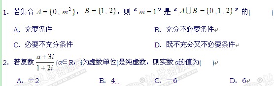 广东省汕头市10-11学年高二下学期教学质量检测(数学理)