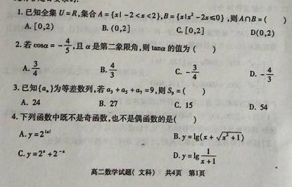山东省曲阜师范大学附属中学10-11学年高二下学期期末考试(数学文)扫描版