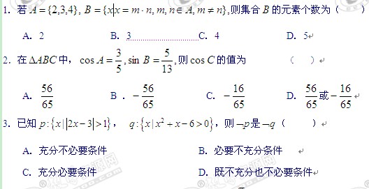江西省高安中学2012届高三上学期第一次月考(数学理)