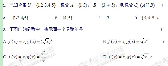 云南省昆明三中、滇池中学11-12学年高一上学期期中考试(数学)试题1