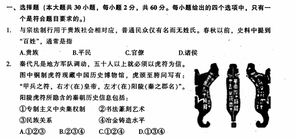浙江省慈溪市2011学年第一学期高三期中测试(历史)扫描版缺答案