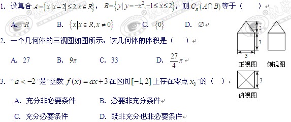 江西省师大附中2012届高三上学期期中考试(数学理)