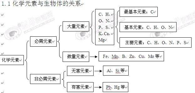 2012高考生物总复习知识点总结:第一单元 生命的物质基础和结构基础