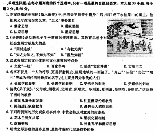 江苏省新沂市王楼中学11-12学年高二上学期期中考试(历史)扫描版无答案
