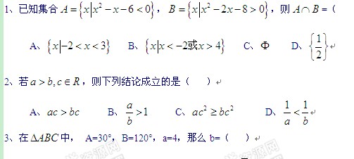 河南省永城实验高中11-12学年高二上学期期中考试(数学文)缺答案