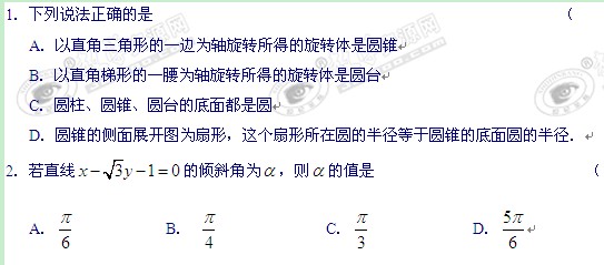 浙江省衢州高级中学11-12学年高二上学期期中考试(数学文)(无答案)