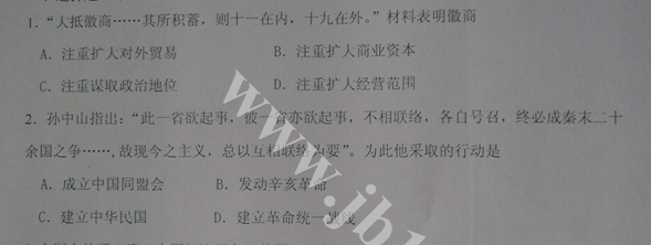 江苏省马坝中学2012届高三上学期期中考试(历史)扫描版