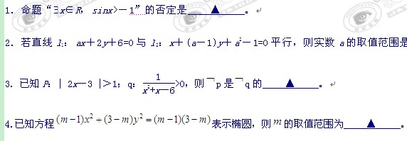 江苏省睢中北校11-12学年高二上学期第二次学情检测(数学理)缺答案
