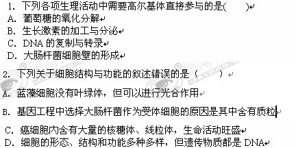 2012高考生物二轮复习新课标专题限时训练:专题2 细胞严整而有序的结构