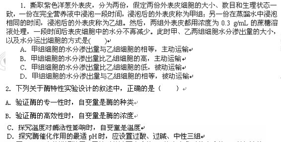 2012高考生物二轮复习新课标专题限时训练:专题3 细胞代谢中的物质跨膜、酶和ATP