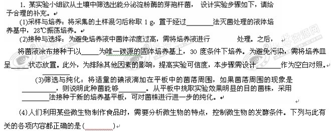 2012高考生物二轮复习新课标专题限时训练:专题15 生物技术实践