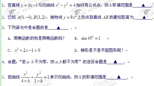江苏省启东中学11-12学年高二上学期第二次月考(数学理)无答案