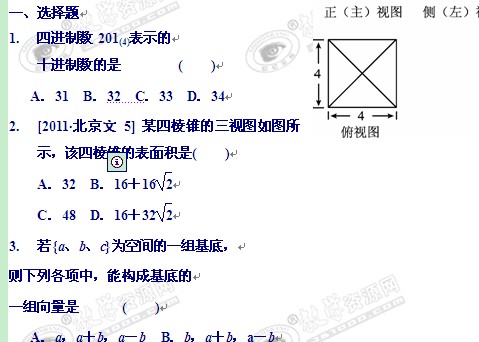 四川省成都市11-12学年高二上学期期末调考模拟试题(3)(数学)