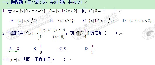11-12学年高一上学期数学(新人教A版)期末模拟试卷