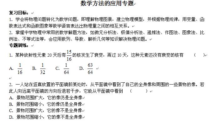 高考专题复习-数学方法的应用