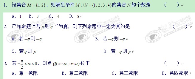 广东省三水中学2012届高三小题训练(16)(数学文)