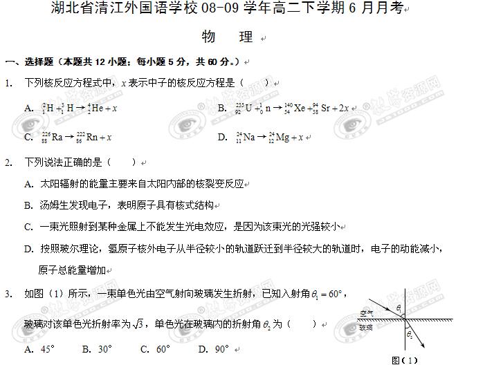 湖北省清江外国语学校08-09学年高二下学期6月月考(物理)