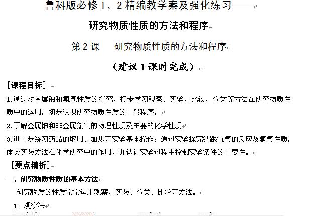 强化训练(二)——研究物质性质的方法和程序(鲁科版必修1、2)