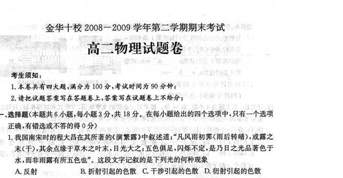 浙江省金华十校2008-2009学年高二第二学期期末考试物理试题(扫描版)