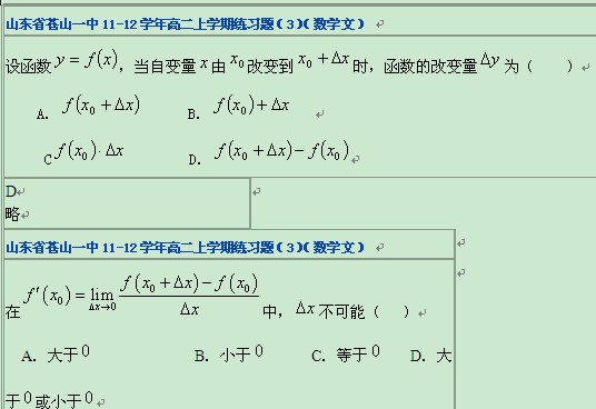 11-12学年高中数学月考、期中等考试试题分类汇编:导数