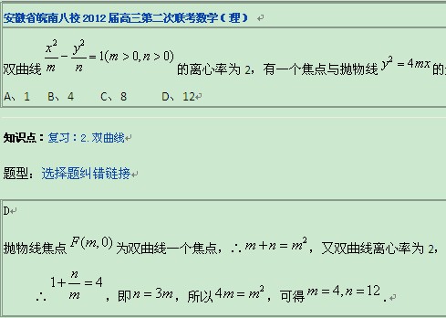 11-12学年高中数学月考、期中等考试试题分类汇编:双曲线