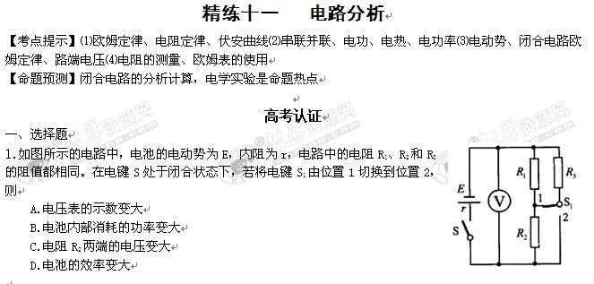 物理:2010届高考物理一轮复习精练十一---电路分析