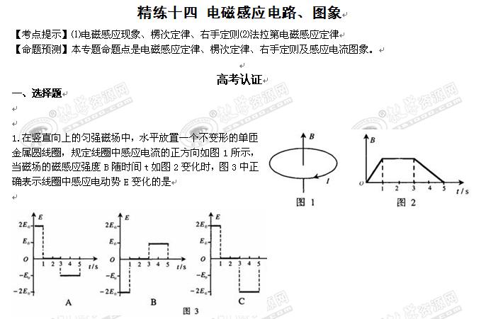 物理:2010届高考物理一轮复习精练十四---电磁感应电路、图象