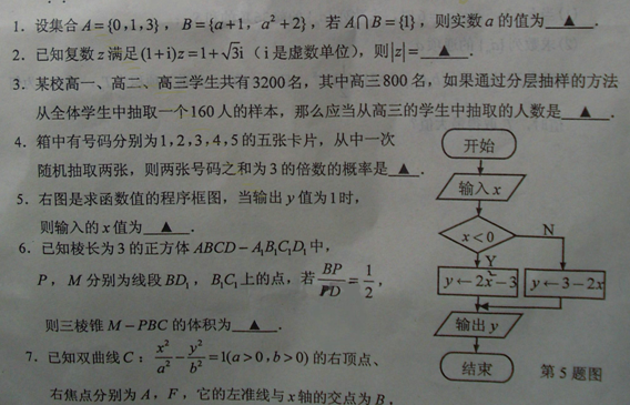 江苏省淮安市2012届高三下学期第三次调研测试(数学)扫描版