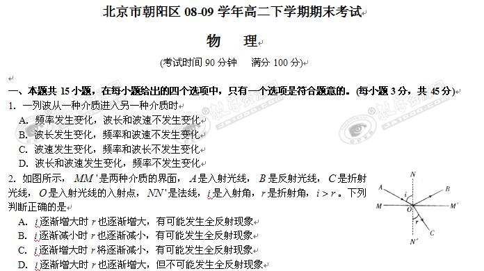 北京市朝阳区08-09学年高二下学期期末考试(物理)
