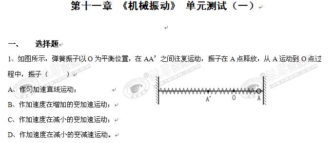 物理:第十一章《机械振动》单元测试(一)(新人教选修3-4)