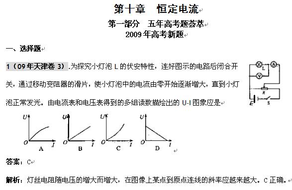 物理:2010届高考复习五三精品题库:第十章 恒定电流