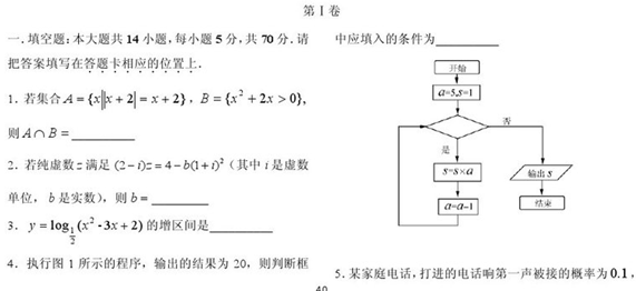 2012年普通高等学校招生全国统一考试模拟试题(江苏卷数学理)扫描版