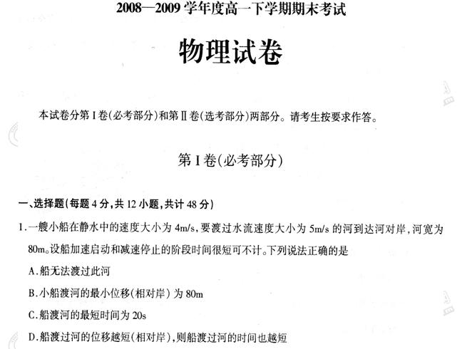 黑龙江省哈师大附中08-09学年高一下学期期末考试(物理)扫描版