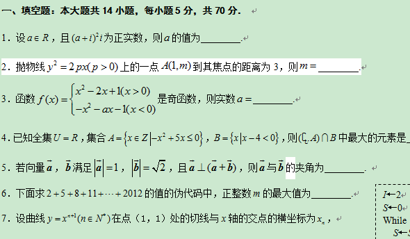 2013年江苏高考数学模拟试卷(四)