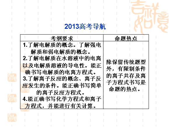 2013高考总复习化学课件:专题二第四单元离子反应(浙江专用)