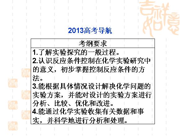 2013高考总复习化学课件:专题十一第四单元 实验方案的设计与评价(浙江专用)
