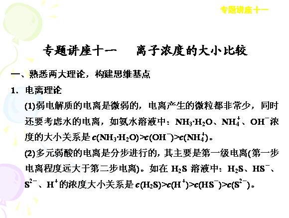 2013年高考化学考前15天备考课件:专题讲座十一 离子浓度的大小比较