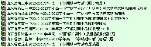 山东省名校2012-2013学年高一下学期中考试试题(物理)【打包下载】