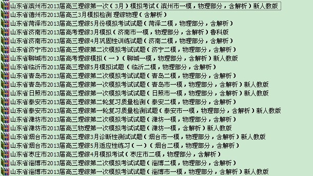 山东省各市2013届高三理综物理部分一、二模拟考试(含解析)【打包下载】