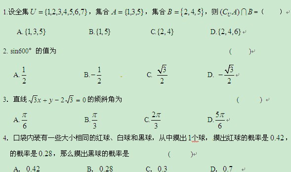 内蒙古包头市包头一中2012-2013学年高一下学期期中考试(数学文)