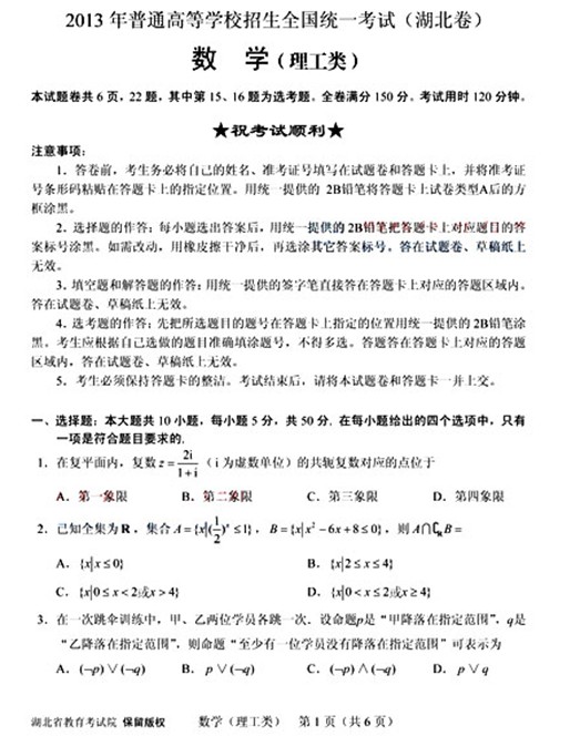 2013年普通高等学校招生全国统一考试湖北卷(数学理)高清扫描版含答案