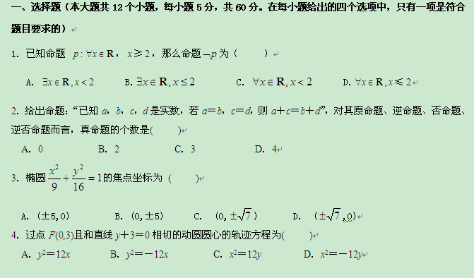 福建省三明市泰宁县第一中学2013-2014学年高二上学期第二次阶段考试(数学文)