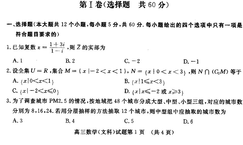 山东省济南市2014届高三上学期期末考试(数学文)高清PDF版
