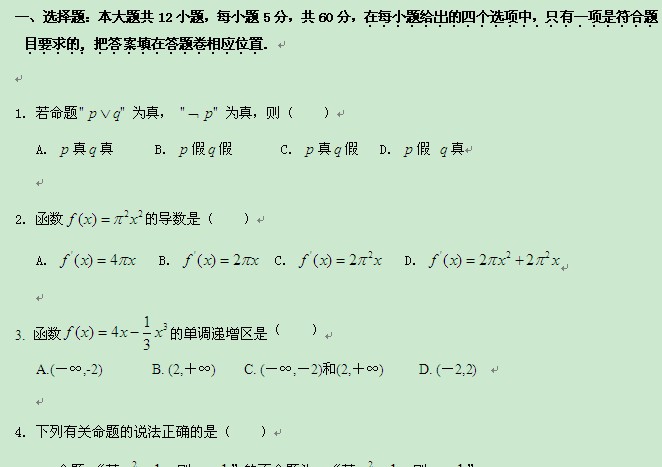 福建省泉州第一中学2013-2014学年高二上学期期末考试(数学文)