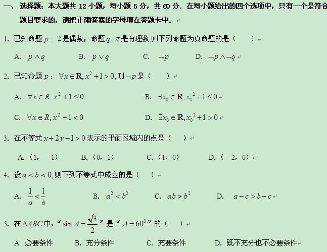 福建省德化一中2013-2014学年高二上学期第二次质检(数学文)