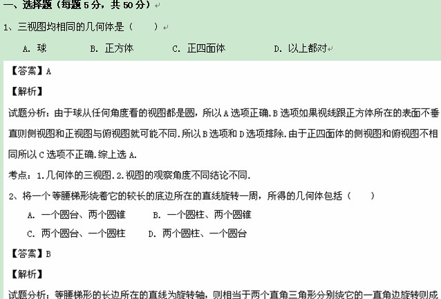 四川省成都市双流县棠湖中学2013-2014学年高二12月月考(数学理)(解析版)