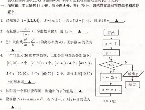 江苏省无锡四市(苏锡常镇)2014届高三第一次模拟(数学)扫描版