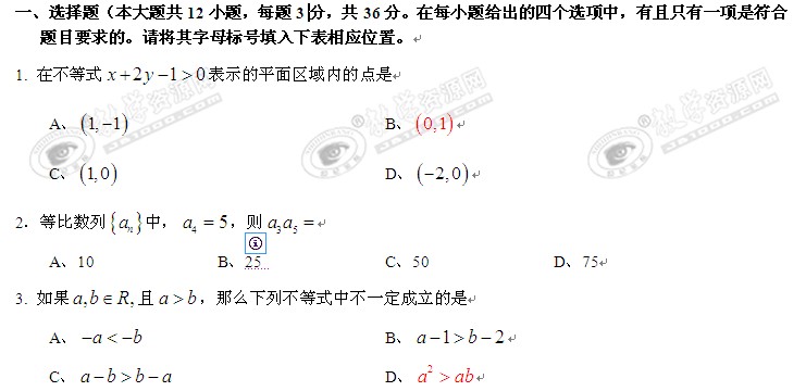 山西省太原市09-10学年高二上学期第一次测评(数学)