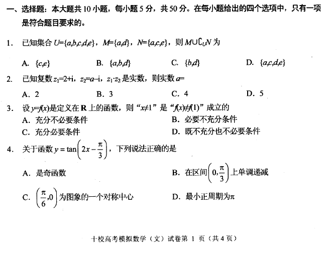 浙江省金华十校2014届高三4月高考模拟考试(数学文)PDF版含答案