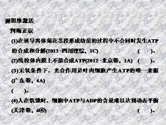 2015届高考生物一轮复习课件:1-3-2细胞的能量通货——ATP ATP的主要来源——细胞呼吸(通用)